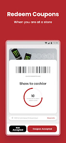 Simply tap the orange redeem button and show your phone at purchase to redeem your coupons