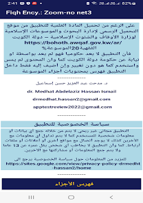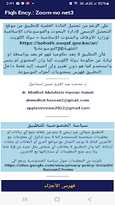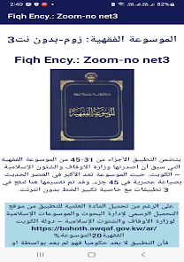 The application was not developed by or on behalf of the government of the State of Kuwait The material used is as it is and has not changed Only an index of the contents of the encyclopedia parts has been added to application The application includes parts 31 to 45 of the Awqaf encyclopedia issued by the Ministry of Awqaf and Islamic Affairs State of Kuwait in 45 parts It has been divided here into 3 parts applications with the feature of enlarging the font without the Internet The privacy policy set out at