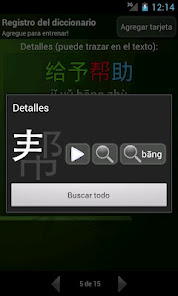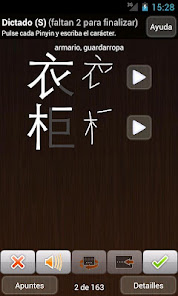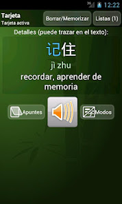 Estudie lo que le apetezca Cada tarjeta de vocabulario est disponible en cuatro modos diferentes para representar los diferentes aspectos del idioma chino Vea el chino pinyin o espaol y verifique que sepa traducirlos o escriba las palabras en chino para luego comparar su propia escritura con una animacin de cada carcter trazo por trazo sincronizados
