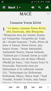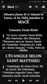 Lvangile selon Matthieu en langue Wolof crit et synchronis en audio Si vous activez la petite icne dhautparleur en haut  droite et appuyez sur  Play  en bas vous aurez la parole lue pour vous et vous pouvez alors suivre lcrit et laudio en mme temps