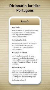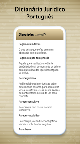 O dicionrio jurdico portugus uma excelente opo para levar no seu smartphone e consultlo a qualquer momento especialmente til para advogados e estudantes de direito pois permite buscar qualquer termo jurdico facilmente