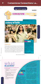 Cornerstone Connections is the Sabbath School Bible Study Guide developed for high school teens in the Sabbath School department at the General Conference of the Seventhday Adventist Church It is based on a fouryear throughtheBible study curriculum The lessons are intended for teens to use in their daily Bible study and to provide the basis for learning and discussion in youth Sabbath School