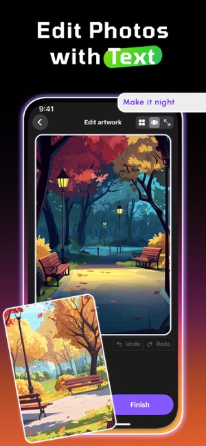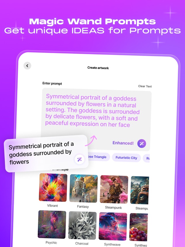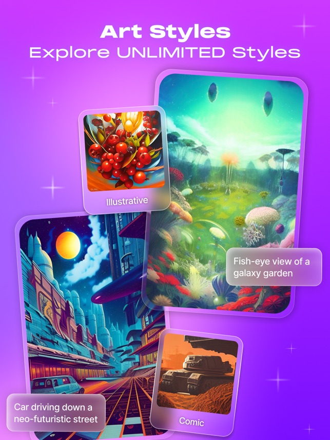 Turn words into photos & beautiful digital artworks using the power of AI! All you need to do is enter a prompt, pick an art style - and watch WOMBO Dream - AI Art Generator bring your idea to life in seconds. Do you want to create a photo, picture, drawing or painting that is your art work? WOMBO Dream - AI Art Generator is an art station for you. You can turn text into any image or photo you want.It's like magic: simply type in whatever you want Dream to paint - such as “Alien Space Station” or “Rainbow Forest” - pick a style (Realistic, VFX, Anime, Avatar, Street Art etc.) and hit create!You don’t need a paintbrush, pencil, or any art supplies to make beautiful artwork, all you need is an idea. Take a back seat and let WOMBO Dream unleash your creativity.► Turn words into art, ask Dream to paint you:- Movie Posters- Song Lyrics- Journal Entries- Poems- Star Signsand much more!► Explore art stylesWhether you’re looking for a vibrant colourful painting or something darker and