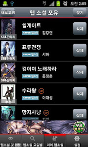 그리고 웹소설 웹툰 및 카툰 정보의 이미지와 함께 리스트로 쉽게 확인 할 수 있도록 되어 있으며 검색을 통해 자주보는 웹소설을 마이 웹소설에 추가하여 쉽게 볼 수 있도록 되어 있습니다