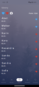 Prehladn zoznam kontaktov s meninami Kalendr obsahuje klasick slovensk kalendr a je doplnen aj o rozren slovensk kalendr V aplikci si mete pozrie vznam mena a menn zoznam vetkch mien