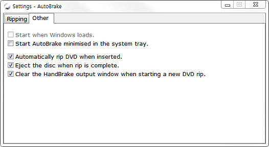 Other 메뉴에서 시스템 트레이에 최소화 Windows 시작시 자동 실행 DVD 삽입 시 자동 립핑 등의 설정을 선택할 수 있습니다