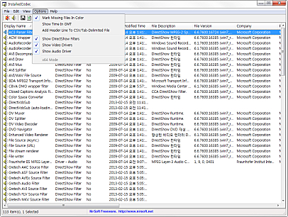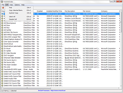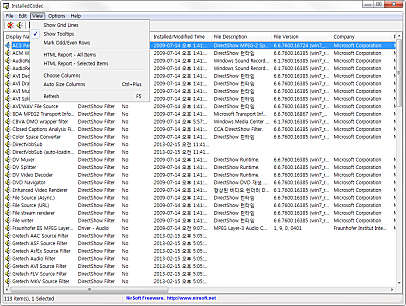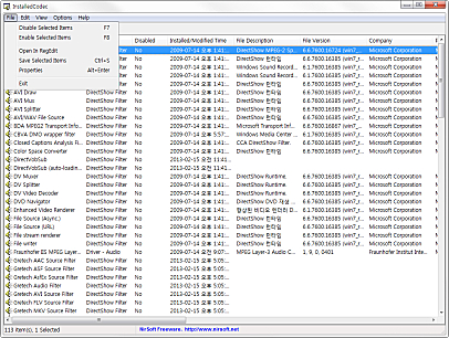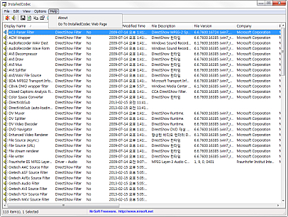 설치된 코덱 드라이버와 다이렉트쇼 필터 목록을 표시합니다