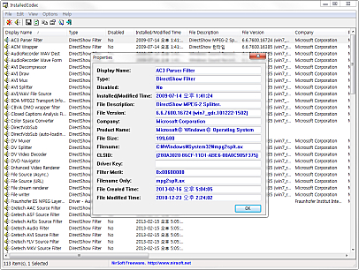 시스템에 설치된 각종 사운드, 동영상 코덱과 다이렉트쇼 필터의 상세 설정을 관리할 수 있습니다