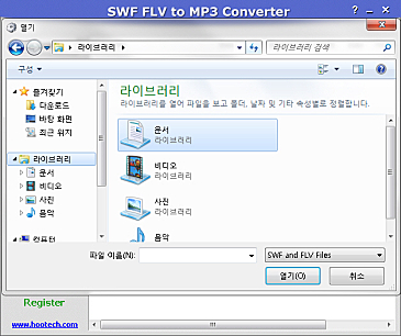 SWFAdobe Flash 무비파일 및 FLVFlash Video를 MP3 / WAV형식으로 변환할 수 있습니다