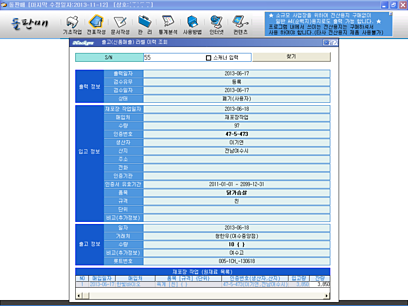 입고 검수 출고 검수 라벨지 이력 조회 재포장 작업 인증번호 변경관리 친환경 인증번호 관리