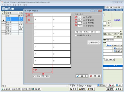 라벨 인쇄시 한사람만 채우는 기능 인쇄시작되는 줄 수 변경 가능
