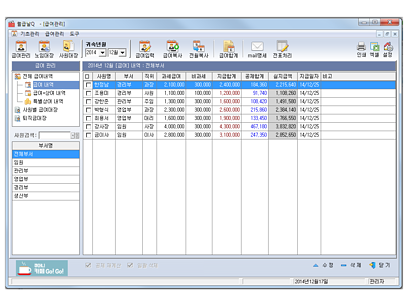 월급 실수령액(급여 소득세,4대보험 공제액) 자동계산, 직원별 급여명세서 관리, 퇴직금계산, 일용직 임금관리를 지원하는 큐머니ERP의 별도 급여관리 프로그램입니다.