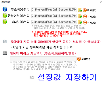 주소록DB백업관리 기능으로 매일 지정한 위치에 파일을 일자별로