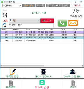 주소록이 엑셀처처럼 표형식으로 구성되어 있어 수정 관리가 쉽습니다