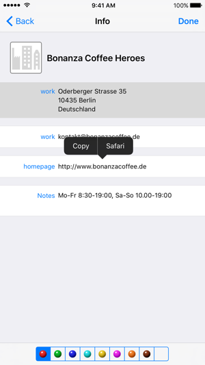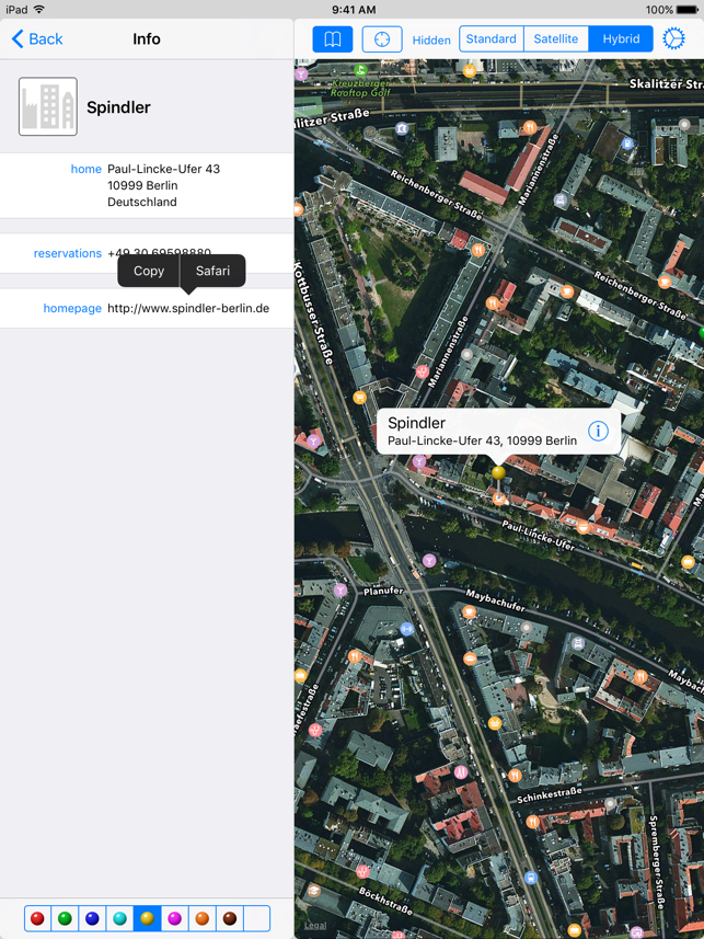 The app that shows address book contacts as map annotations.Features:• Annotate more than one contact at once. You can select or deselect all contact group members by just one button click.• Side-by-side view (iPad only) of the address book and the map. You can highlight a contact’s map annotation by tapping the address in the contact’s detail page. Vice versa you can show the address book page by selecting a map annotation and tapping the disclosure button.• Zoom level selection from the toolbar and visualization of the currently selected zoom level in the map.• Location look-up is done using the Apple service.• Setting a pin for a contact also applies to duplicates (contacts with the same name and addresses).• Support for multiple address books (Local, iCloud, CardDAV, Exchange).• Multiple level Undo / Redo via device shake (iPhone/iPod/iPad) or long press onto contacts toolbar (iPad only).• iCloud synchronization between multiple devices (*).• Integration of third party navigation a
