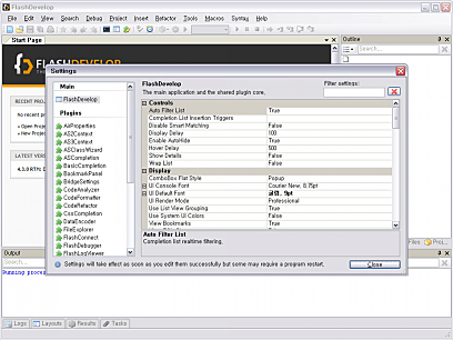 FlashDevelop 사용자가 원하는 대로 재구성할 수 있는 좋은 도킹 인터페이스를 가지고 있습니다