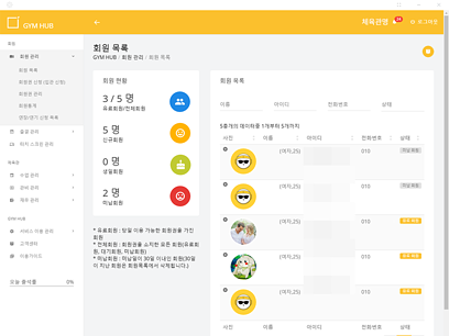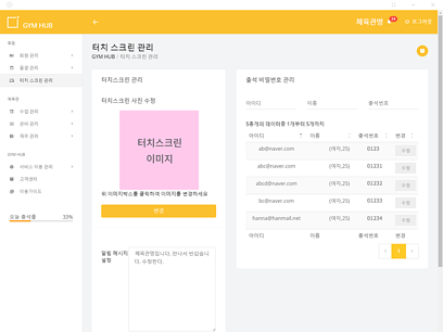 체육관의 신규회원유입과 기존회원이탈율을 낮추는 강력한 회원관리 기능을 탑재해 짐허브 터치스크린과 연동되는 통합관리 시스템으로 터치스크린은 어떤 기기든 호환되는 프로그램입니다.