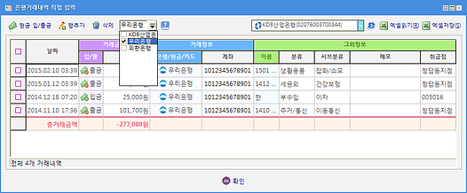 몇몇 자동조회를 코딩하지 못한 은행은 키보드 입력 또는 엑셀파일로 추가할 수 있습니다