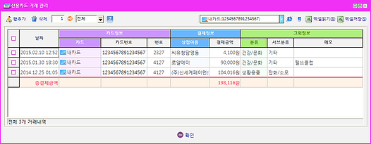 그외 신용카드는 홈페이지에서 결제기록엑셀파일을 다운받아 입력할 수 있습니다