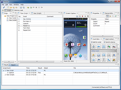 TheOwl 은 수동으로 수행하기 힘든 반복 테스트 및 리그레션 테스트(Regression Test)를 자동화하여, 개발하고 있는 App의 품질을 향상시킬 수 있는 안드로이드 단말기 전용 테스트 프로그램 입니다.