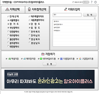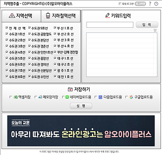 전국 주요 광역시/도와 지하철역을 원하는 키워드와 조합하여 검색 광고 키워드 등록을 용이하게 해주는 프로그램입니다.
