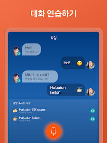 이 앱은 두 사람의 기본적인 대화로 시작됩니다 신속하게 핵심 핀란드어 단어를 외우고 이 단어로 문장과 구를 만들어봅니다 45분의 수업이 끝나면 회원님의 목소리로 이 대화를 재구성해 볼 수 있게 됩니다 핀란드어 문장을 공부하는 아주 효율적인 방법입니다 최신 음성 인식 기능과 분산 학습 알고리즘을 통해 더 효과적으로 언어를 학습할 수 있습니다