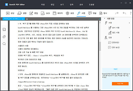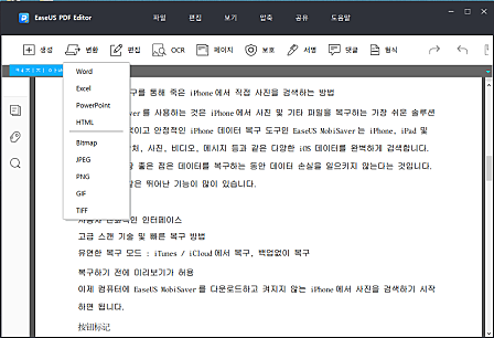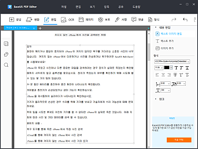 EaseUS는 사용자가 원하는 대로 PDF의 텍스트 이미지 및 링크를 추가 수정 또는 제거합니다 페이지를 쉽게 삽입 삭제 순서 변경 추출 잘라내기 또는 회전할 수 있습니다