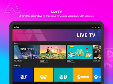 Access LIVE TV channels for free from Channel 5 Channel 8 Channel U Suria Vasantham and CNA