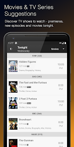 TV Listings and TV Show Guide app also provides suggestions for TV shows and movies in prime time