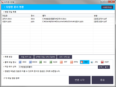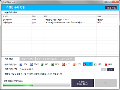 변환하고자 하는 문서를 리스트에 한꺼번에 추가하여 일괄 변환할 수 있습니다