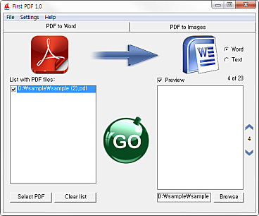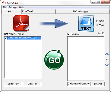 선택한 PDF 문서를 텍스트나 이미지로 변환해주고 변환될 파일의 미리보기 기능을 제공하는 프로그램입니다.