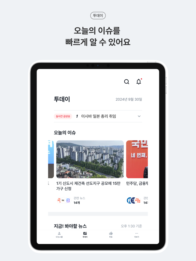 나의 댓글로 투표 항목을 만드는 ‘다이나믹폴’ 투표를 새롭게 선보여요. 실시간으로 생성되는 투표 항목으로 나의 ‘진짜 의견’에 투표하세요. 등록한 토픽에서 원하는 주제의 뉴스를 빠르게 찾아볼 수 있어요. 더 빠르게 이슈를 알려드릴 수 있도록 ‘투데이’ 메뉴를 개선했어요. 원하는 뉴스를 빠르게 검색할 수 있도록 검색 기능을 향상시켰어요. 자잘한 버그들을 박멸하고 더 빠르게 뉴밍을 이용할 수 있도록 뉴밍을 뽀득뽀득 청소했어요.