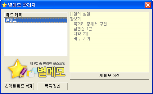 간편하게 메모 기능 및 스케쥴 관리 기능을 이용할 수 있는 포스트잇 형태로 제공되는 프로그램입니다.