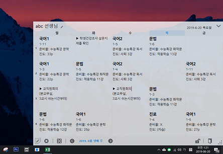 주간 일정 시간표가 필요한 교사, 학생, 직장인 등을 위한 바탕화면에 거치할 수 있는 위젯 형태의 시간표 메모 프로그램입니다.