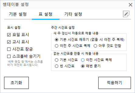 쌤테이블은 사용자가 설정한 기본 시간표를 기본값으로 지정하고 매 주마다 시간표를 생성하여 지난 주 이번 주 다음 주 시간표를 관리하고 조회할 수 있도록 하여 일정을 체계적으로 관리할 수 있도록 도와줍니다