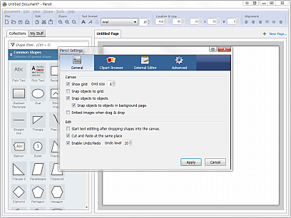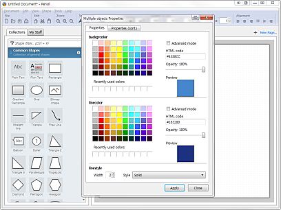 일반적인 도형에서부터 플로우차트 도형 데스크탑/Web UI 및 안드로이드 모바일과 iOS GUI 도형들을 모두 포함하고 있고 다양한 커뮤니티에서 지속적으로 새로운 도형들이 만들어지고 있습니다