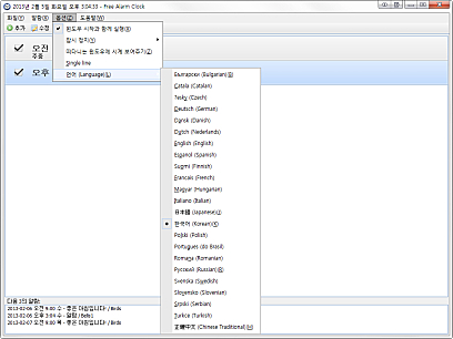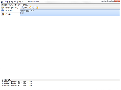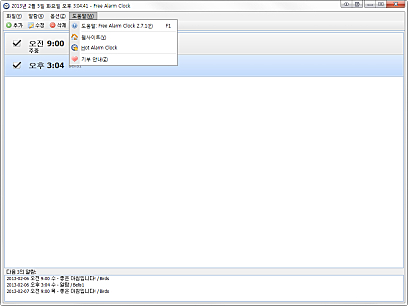 사용자가 원하는 대로 많은 알람을 설정할 수 있는 알람 시계로 한 번 알람이나 반복 알람을 설정할 수 있고 텍스트 필드를 이용해 메모를 작성할 수 있습니다.